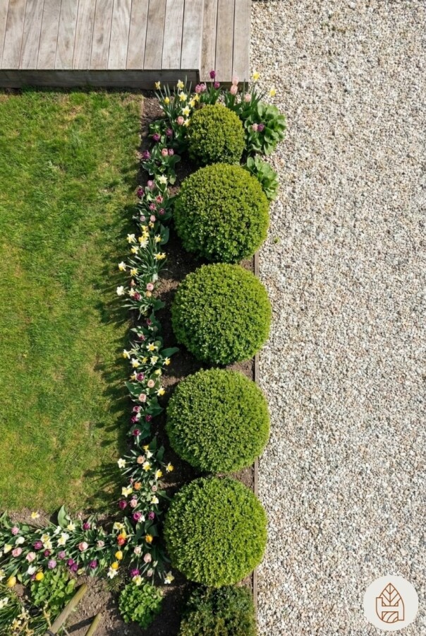 En termes de biodiversité, la Sphère de Buxus sempervirens attire peu d'insectes pollinisateurs, mais elle peut offrir un abri aux petits oiseaux. Bien que certaines parties de la plante soient toxiques, elle reste sans danger pour les jardins familiaux si elle est utilisée correctement. La floraison a lieu en mars et avril, avec de petites fleurs jaunes et vertes qui ajoutent une touche de couleur discrète. La principale valeur ornementale de cette plante réside dans sa forme sphérique et son feuillage dense, qui en fait un excellent choix pour les plantes de haie. Elle se combine facilement avec d'autres plantes, notamment les vivaces et les arbustes à feuillage persistant. Lors de la plantation, il est important de respecter les recommandations de densité pour assurer une couverture uniforme (voir les caractéristiques de la plante). Pour ceux qui cherchent à ajouter une touche élégante à leur jardin, la Sphère de Buxus sempervirens est un choix idéal, alliant esthétique et robustesse.