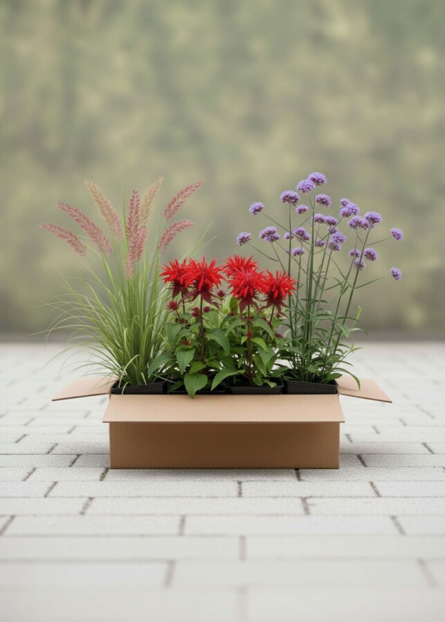 Ajoutez chaleur et couleur à votre jardin avec Mélange Coucher de Soleil. Ce kit de plantes soigneusement assemblé offre des accents de couleur puissants et une structure élégante de la mi-été à l'automne. Des fleurs éclatantes rencontrent des herbes ondulantes – idéal pour les endroits ensoleillés et facile à entretenir.