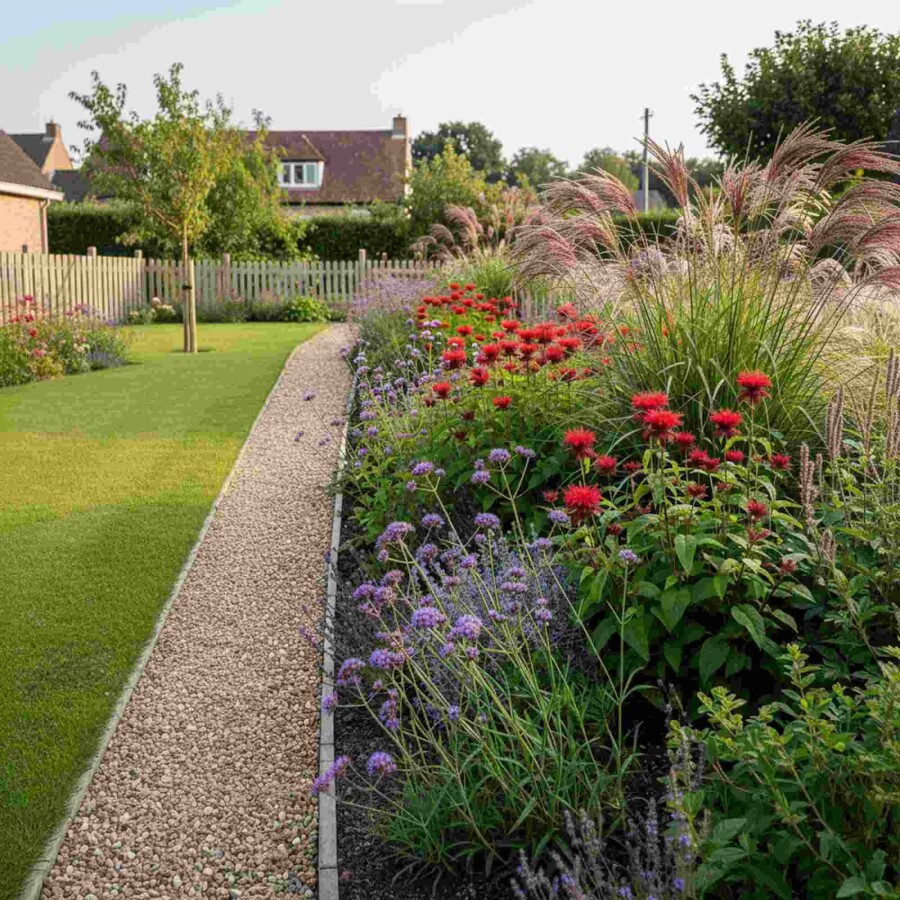 Plantation et entretien Mélange Coucher de Soleil (6x Miscanthus de Chine, 6x Monarde, 6x Verveine de Buenos Aires)