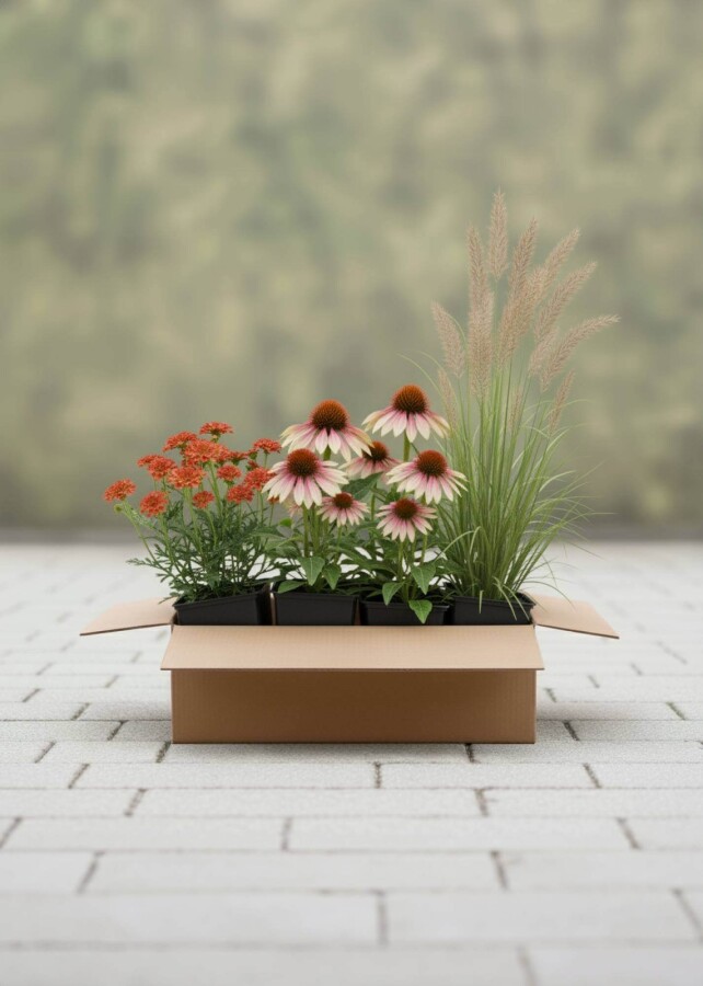 Toutes les plantes du Mélange Lueur de Fin d’Été sont cultivées en pots et peuvent donc être plantées toute l'année, sauf pendant les périodes de gel ou de neige. Avec chaque paquet de plantes, vous recevez également un plan de plantation afin que vous puissiez voir exactement où chaque plante doit être placée et quelle distance garder entre elles.